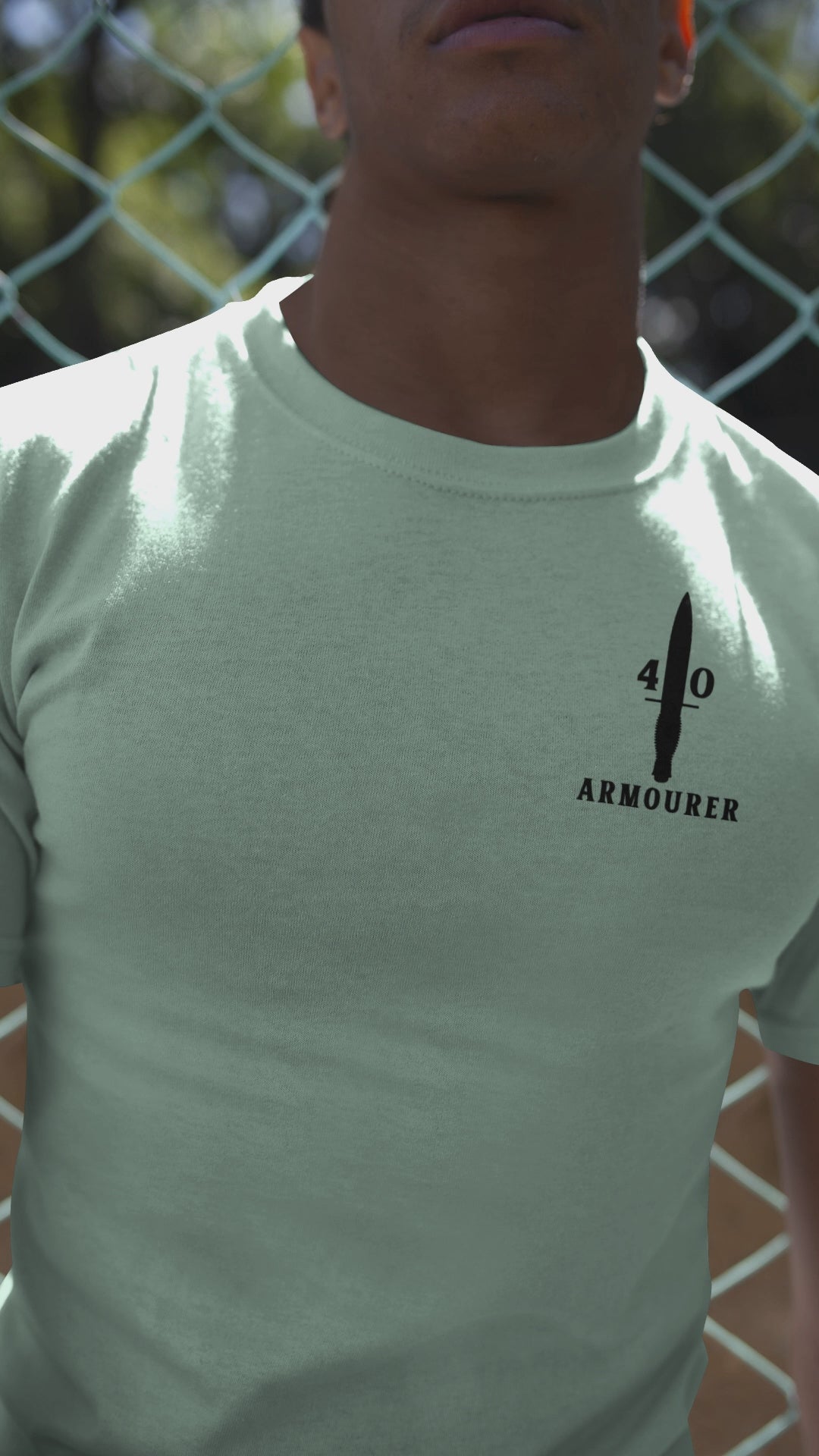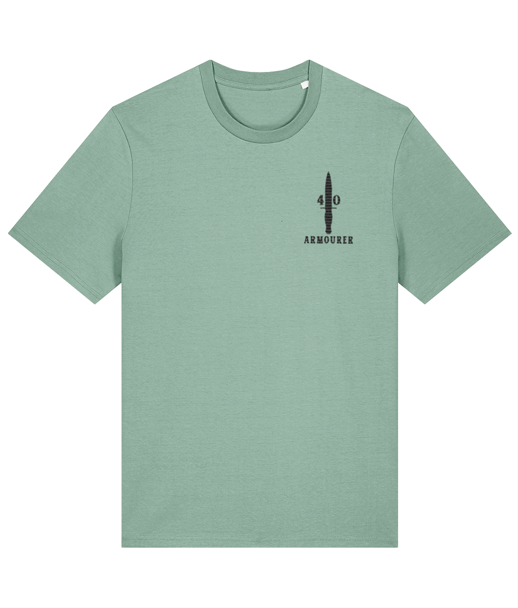 Sleeve hem and bottom hem with wide double needle topstitch.