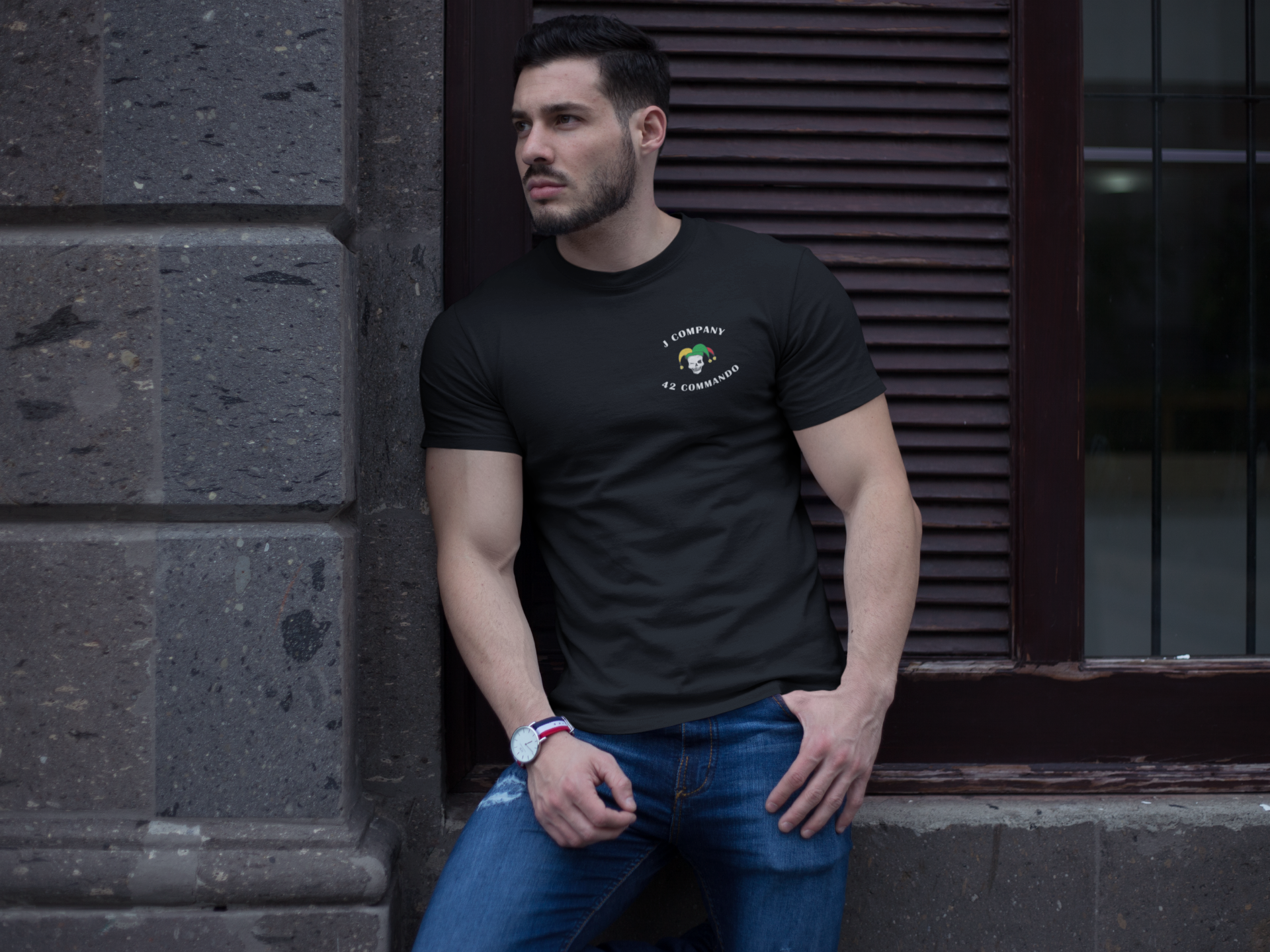 J Company 42 Commando Embroidered T-Shirt Dark